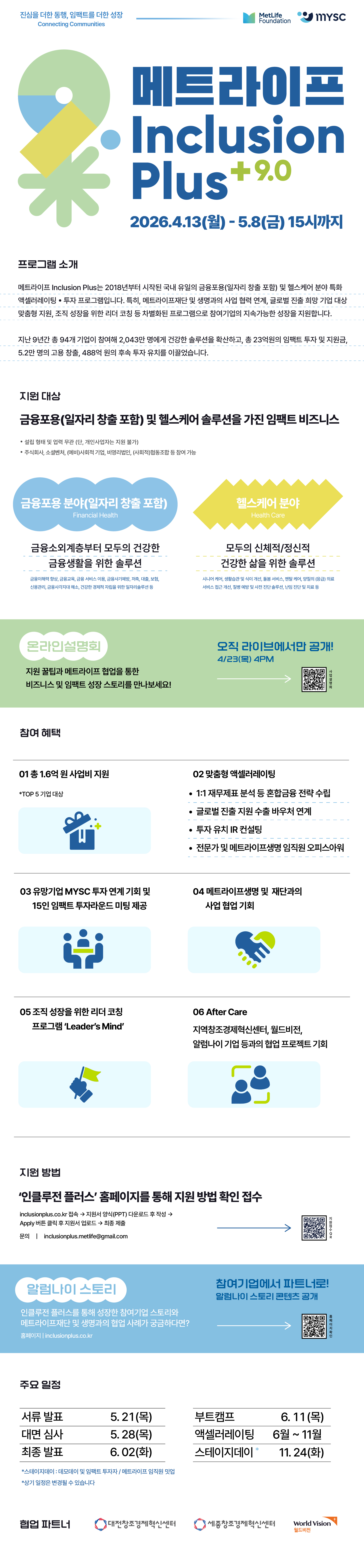 메트라이프 Inclusion Plus 9.0 참여기업 모집 (~5/8)