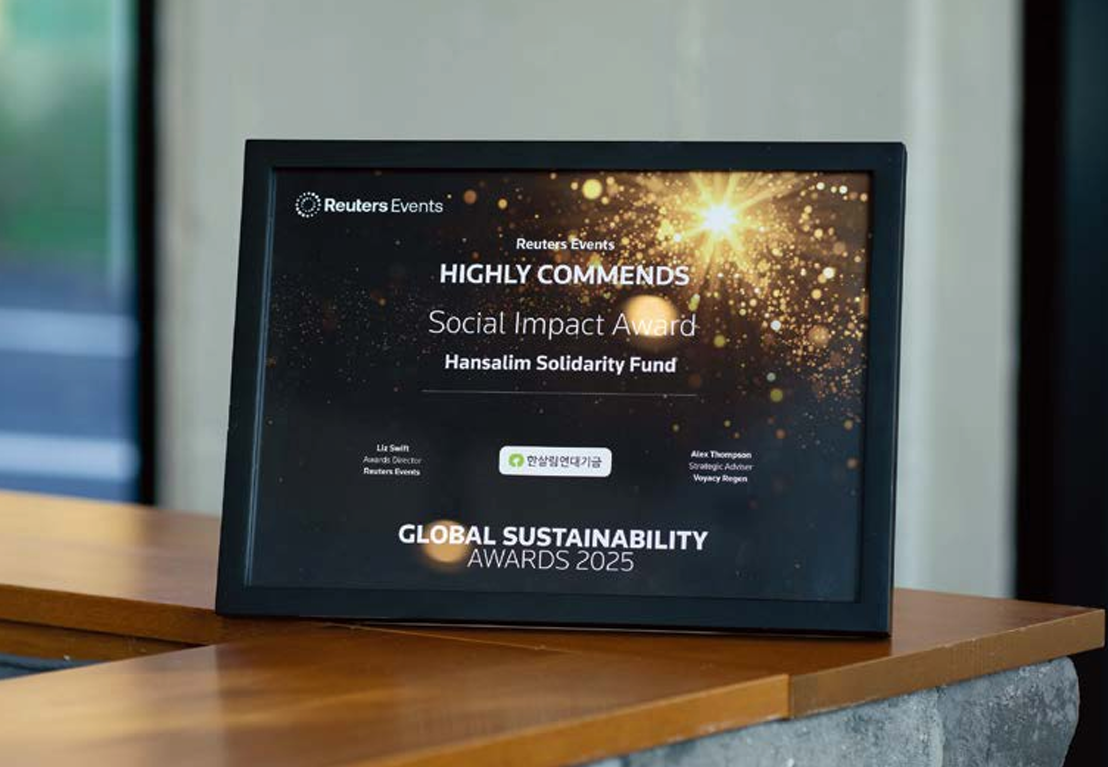 이러한 가치는 국제 무대에서도 인정받았습니다. 2025년 10월, 한살림연대기금은 영국 로이터가 주관하는 ‘글로벌 지속가능성 어워드 2025’에서 사회적 임팩트 부문 우수상(Highly Commended)을 수상했습니다. 아스트라제네카, 바이엘, 클라우드플레어 등 쟁쟁한 글로벌 기업들과 당당히 경쟁해 얻어낸 쾌거입니다. 로이터는 한살림의 모델이 UN 지속가능발전목표(SDGs) 중 ‘불평등 감소’와 ‘지속가능한 소비와 생산’ 등에 기여했다고 평가했습니다.
