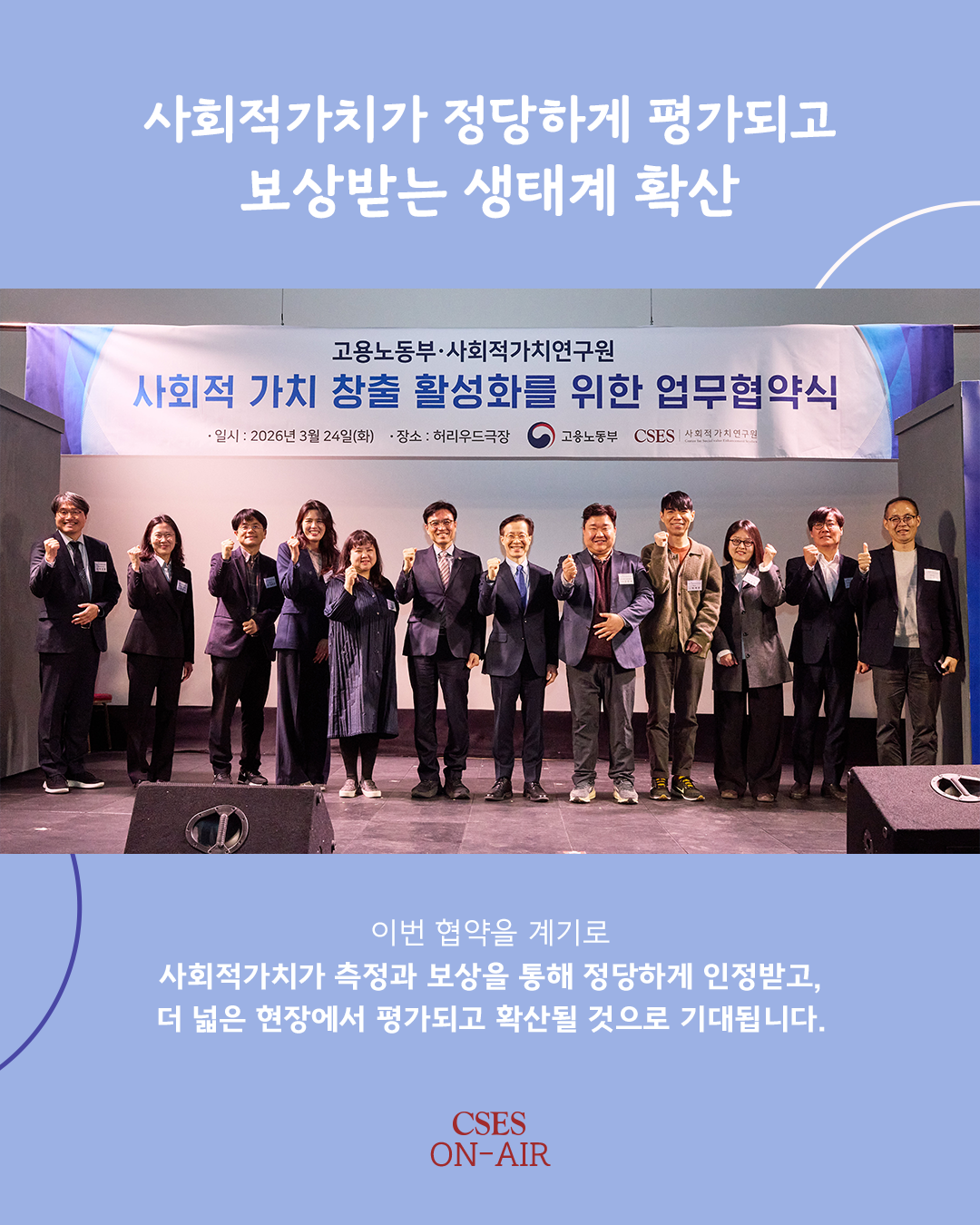 고용노동부는 사회적가치연구원과 업무협약(MOU)를 맺고