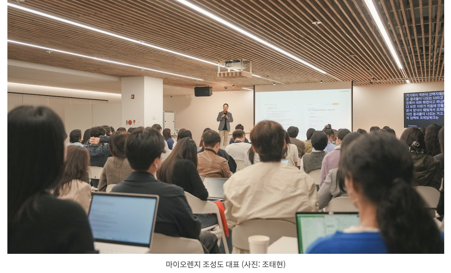 마이오렌지 조성도 대표는 기술을 활용한 새로운 가능성을 보여줬습니다. "임팩트의 정당화, 이것이 우리가 해야 할 일입니다. 우리가 하는 일이 중요하다는 것을 객관적으로 증명하고, 이해관계자들과 신뢰를 쌓아야 합니다."