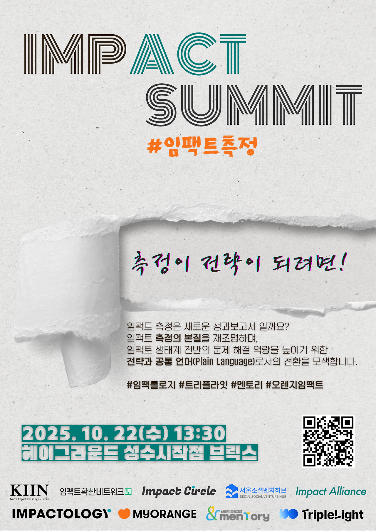| 제목 | [후기] 임팩트 써밋(IMPACT SUMMIT) #임팩트측정 | 등록일 | 2025.11.03 |