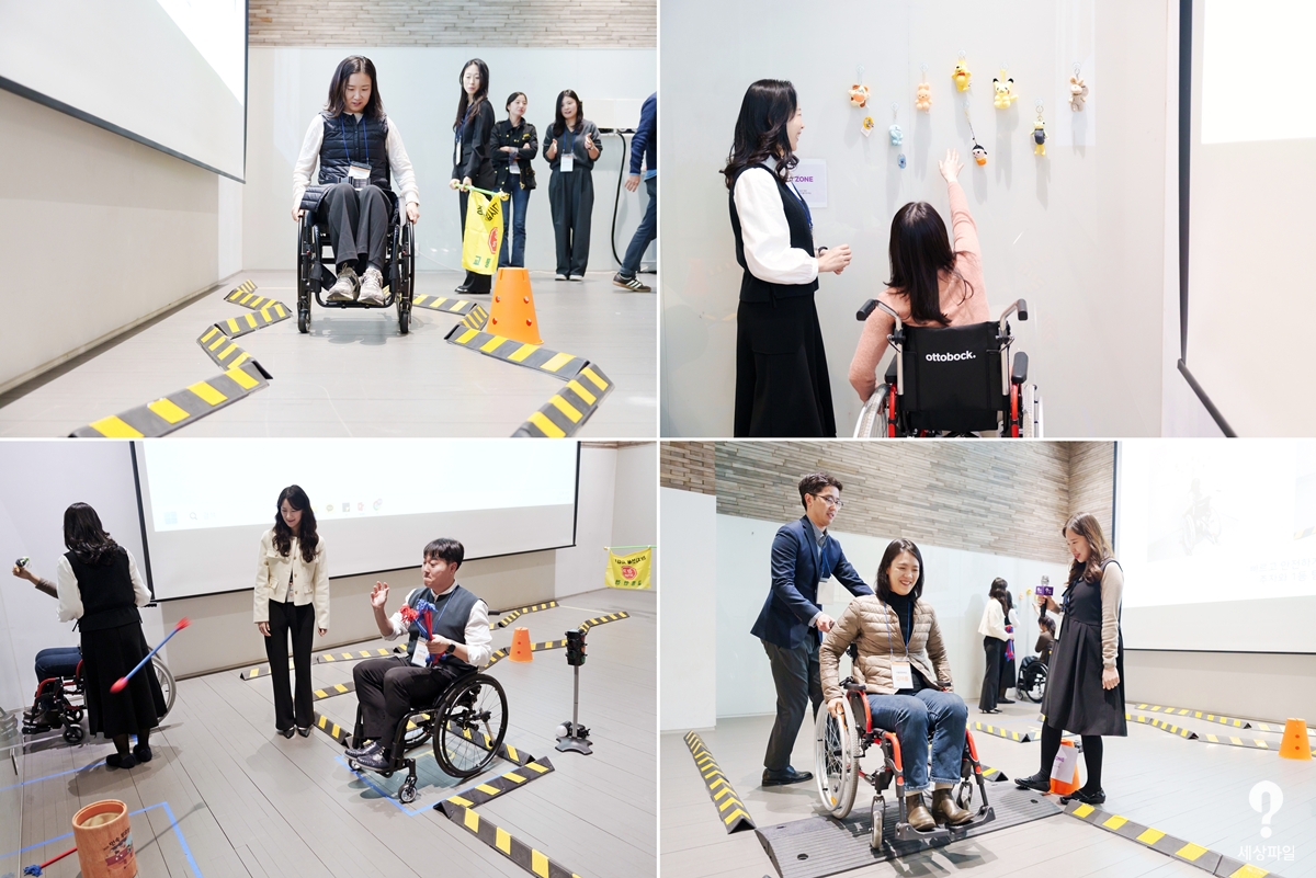 “평소에 누군가의 휠체어를 뒤에서 밀어준 적은 많은데 직접 타본 건 처음이에요. 생각보다 휠체어를 조작하는 게 힘들고 어렵네요.”
