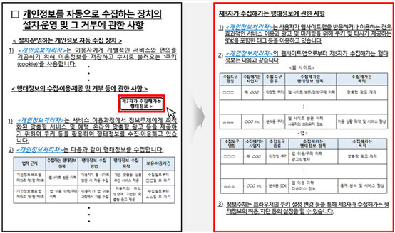 별도의 창으로 제3자 수집해 가는 행태정보 관련 내용을 제공하는 방법 예시 (출처=개인정보보호위원회, 『개인정보 처리방침 작성지침』