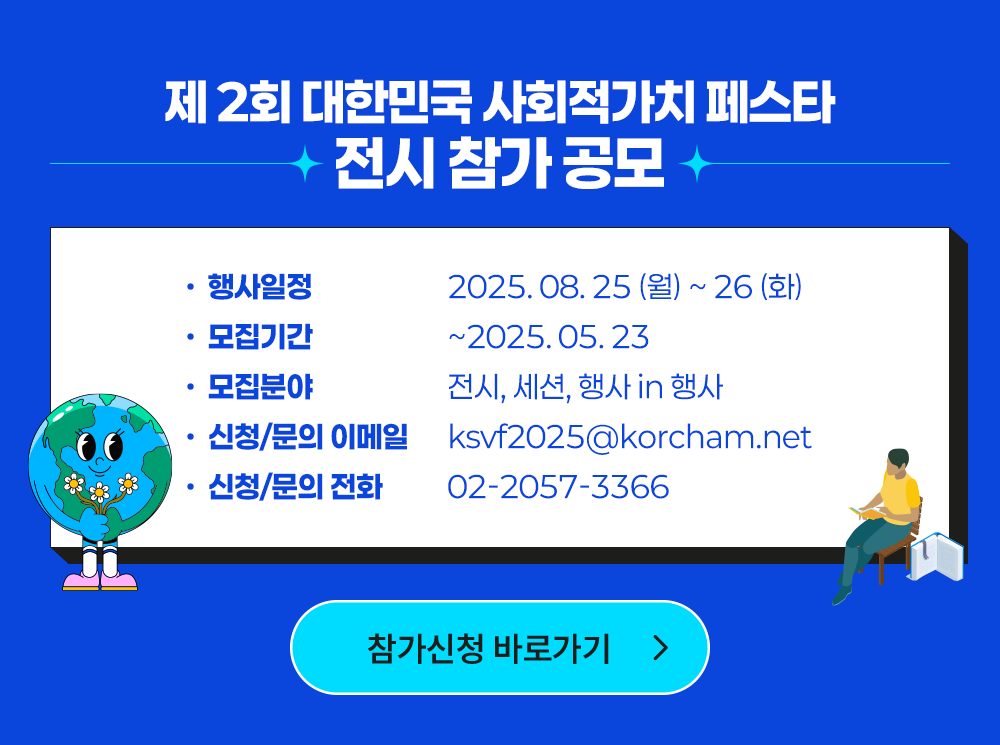 올해 2회차를 맞는 대한민국 사회적가치 페스타에 더 많은 분이 참여하고, 그 참여를 통해 시작된 작은 연결이 만드는 변화로 사회문제 해결을 위한 실마리를 함께 찾아 나갈 수 있기를 바랍니다.