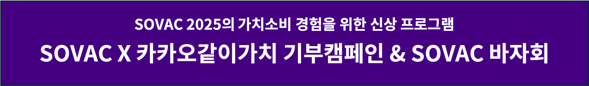 먼저 SOVAC 2025에서는 대표 기부 플랫폼인 카카오 같이가치와 함께 “SOVAC X 카카오같이가치 기부캠페인”을 진행하고 있습니다.