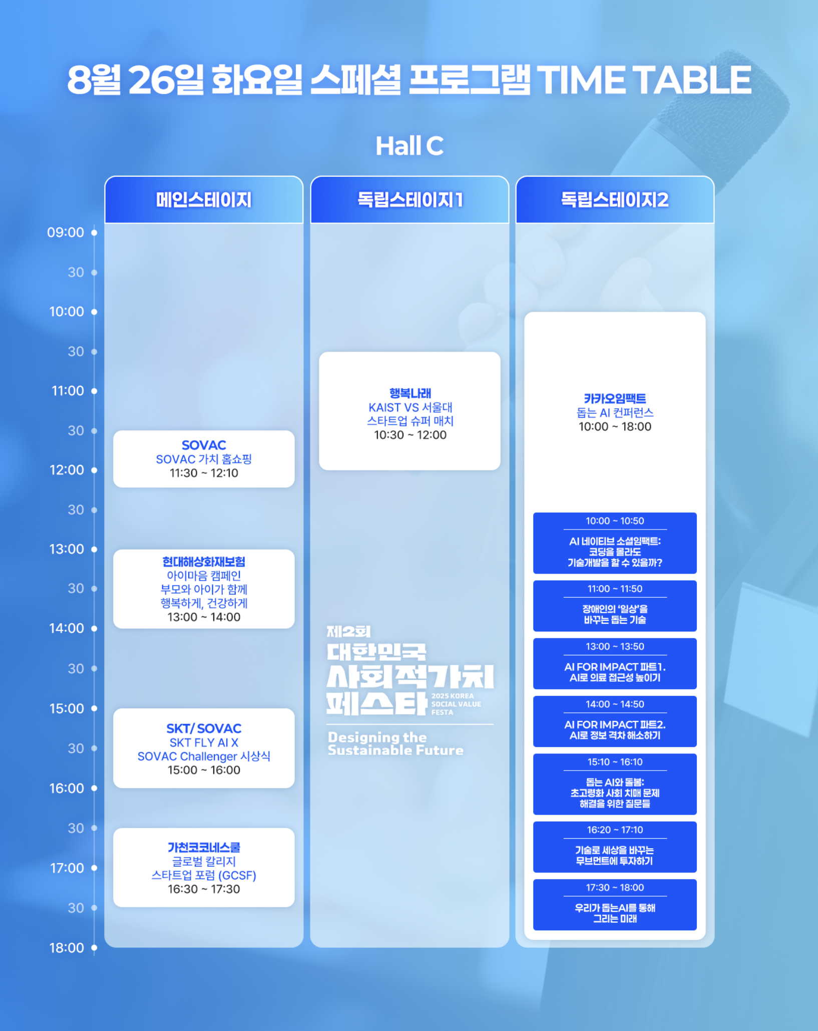 (Hall C 메인스테이지 8/25 14:10-14:40, Hall C 독립스테이지2 8/25 15:10-18:40, Hall C 독립스테이지2 8/26 15:10-18:40)